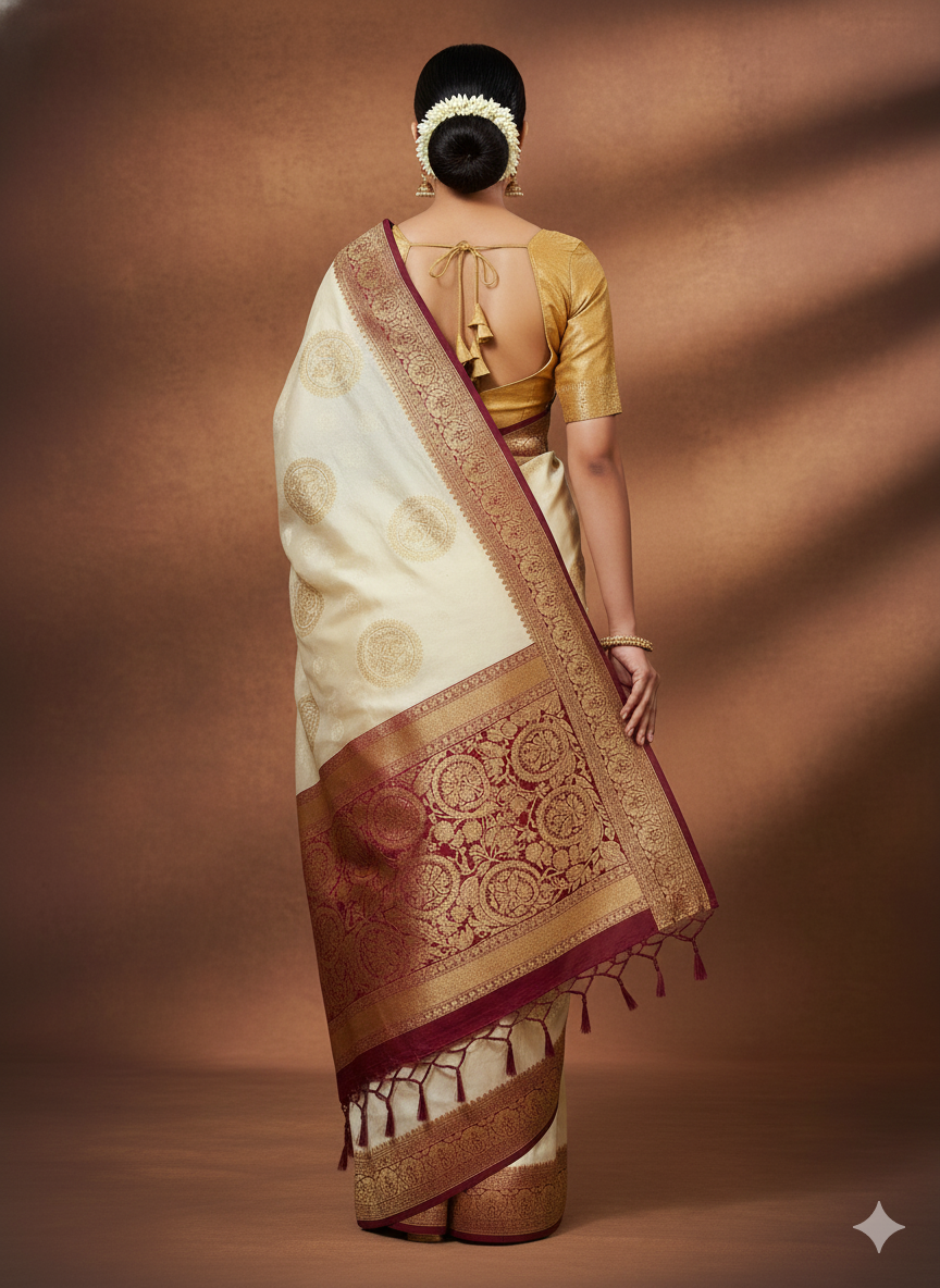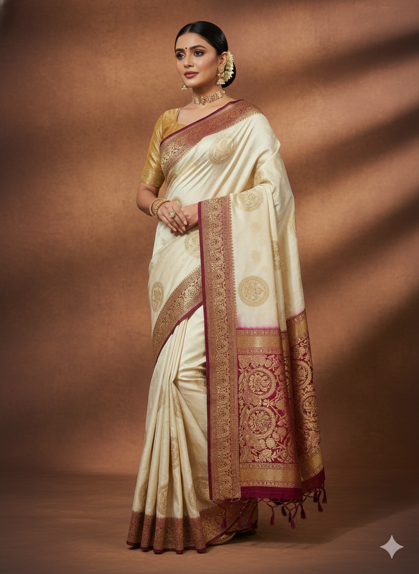 Royal Cream Banarasi Silk Saree – Premium Collection